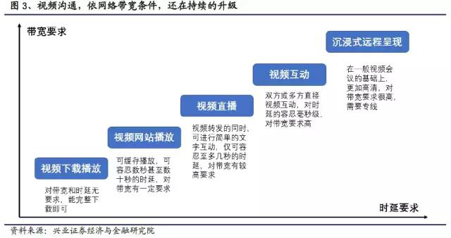在ADSL接入時代,基本上只能實現(xiàn)視頻下載播放,視頻網站播放的體驗會比較差。隨著2010年之后,F(xiàn)TTH/FTTB開始大規(guī)模部署,視頻網站播放可以良好使用。2014年以來,隨著4G部署,以及寬帶中國的實施,視頻直播成為市場熱點。如今,網絡帶寬支持基本的視頻互動,但是視頻清晰度、網絡的穩(wěn)定性仍舊有待于提升,這樣影響了視頻互動的體驗。