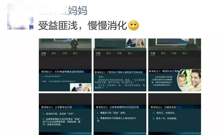 家長課堂的出現(xiàn)打破了時間、地點、空間等因素的限制,讓家長與學(xué)校之間有了新的溝通渠道,使學(xué)校教育和家庭教育達成了完美契合。