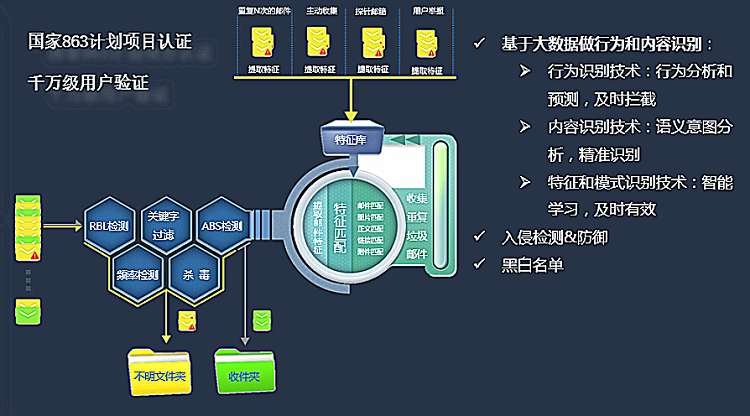 263深耕企業(yè)郵箱行業(yè)近20年,擁有獲得國(guó)家專利的反垃圾技術(shù),自主研發(fā)的TAP智能反垃圾網(wǎng)關(guān)通過國(guó)家863項(xiàng)目A級(jí)驗(yàn)收,是國(guó)際反垃圾組織白名單成員。263云網(wǎng)關(guān)依托于263企業(yè)郵箱系統(tǒng),利用基于用戶反饋和探針網(wǎng)絡(luò)的垃圾郵件監(jiān)控體系,可隨時(shí)獲得各種垃圾郵件樣本。