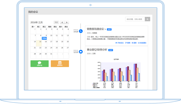 可管理維護(hù)企業(yè)通訊錄,方便會議的組織邀請;臨時緊急會議可在通訊錄中選擇參會人后立即發(fā)起會議。