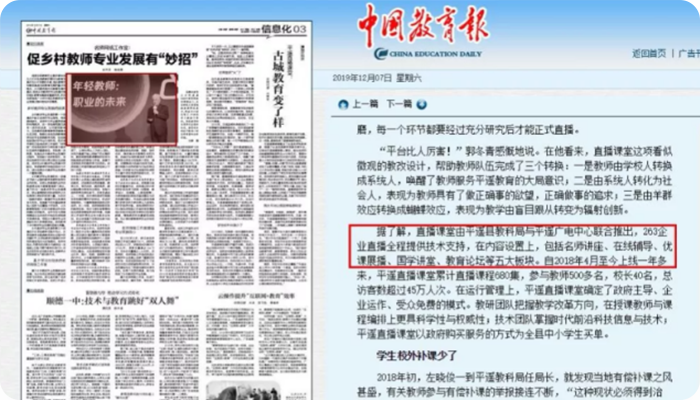 《中國教育報》聚焦直播課堂專欄報道263空中課堂項目